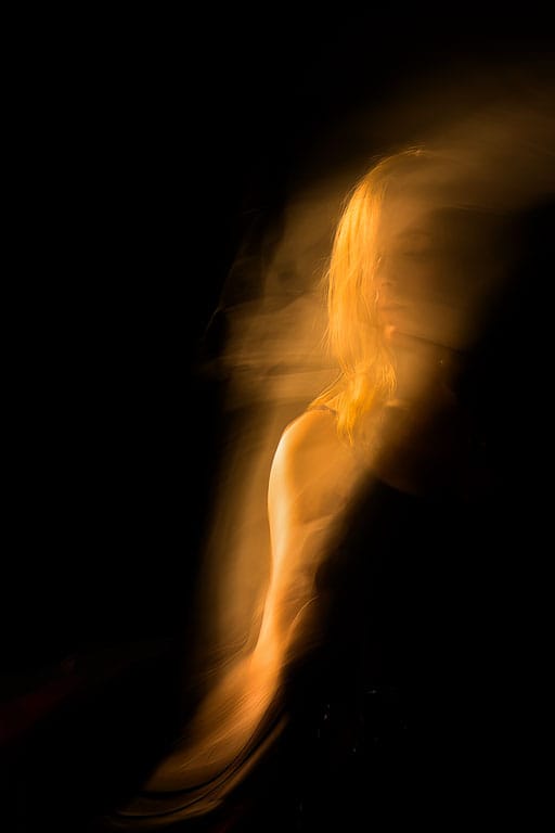"I used a slow shutter speed to capture this young woman swirling behind a gap in a curtain."