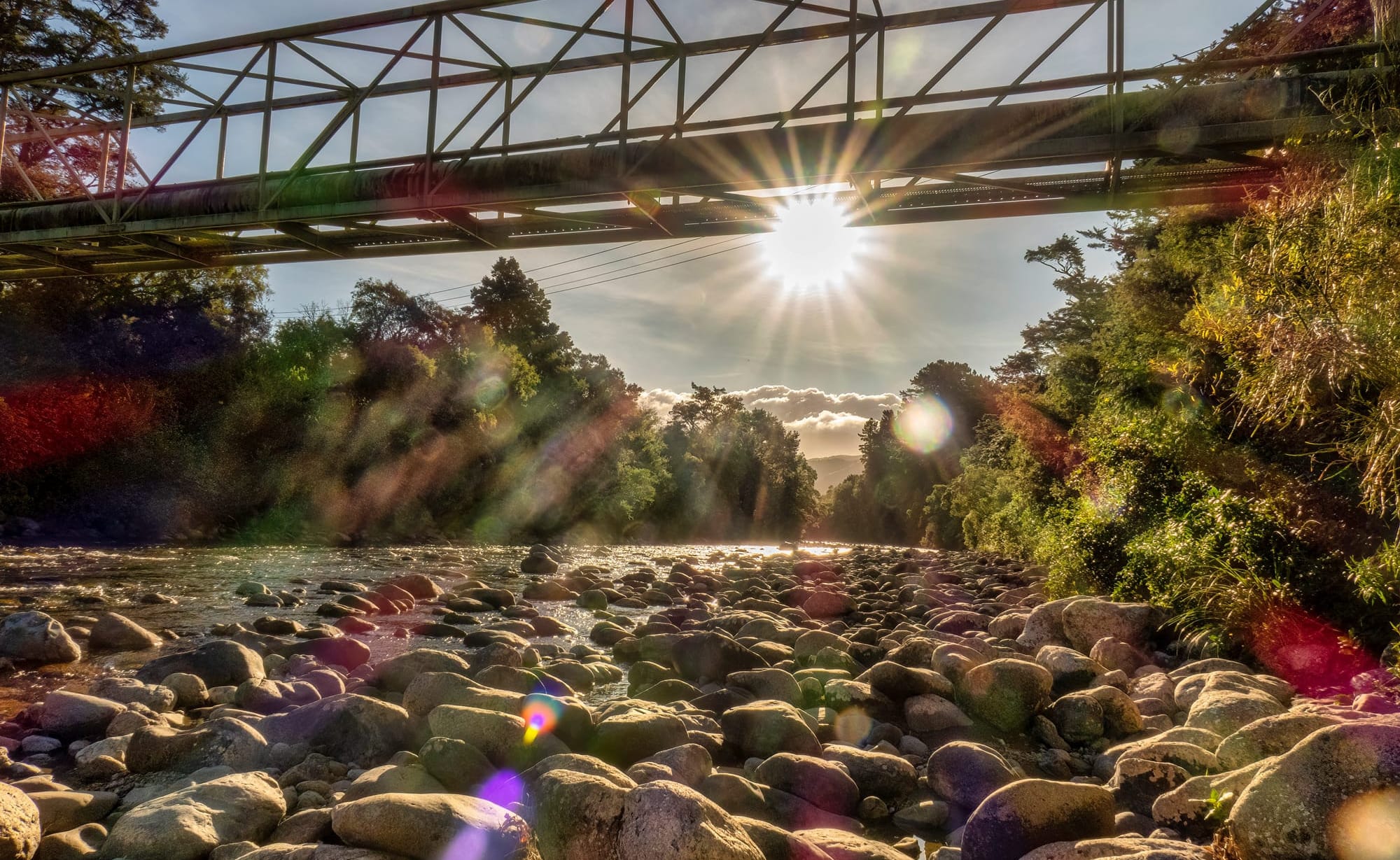 "I love the colours and orbs produced by the sun and lens flare in this shot. The Waingawa River at the far end of Upper Plain Road, Masterton."