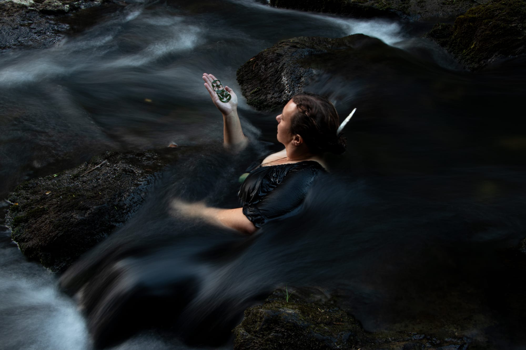 Using long exposure to capture the mauri in Te Kore. Transient moments of light suggest the brief separation of Ranginui and Papatūānuku that provided space for humanity to exist. Framed by darkness, these self-portraits question the role of womanhood while facing the fear of being Wharengaro, a ‘broken whare.’"